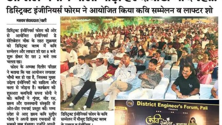 District Engineers Forum Pali organised Kavi Sammelan during Engineers Day Celebration Week 2025. The invited poets were aayushi rakhecha sudeep bhola, amit sharma